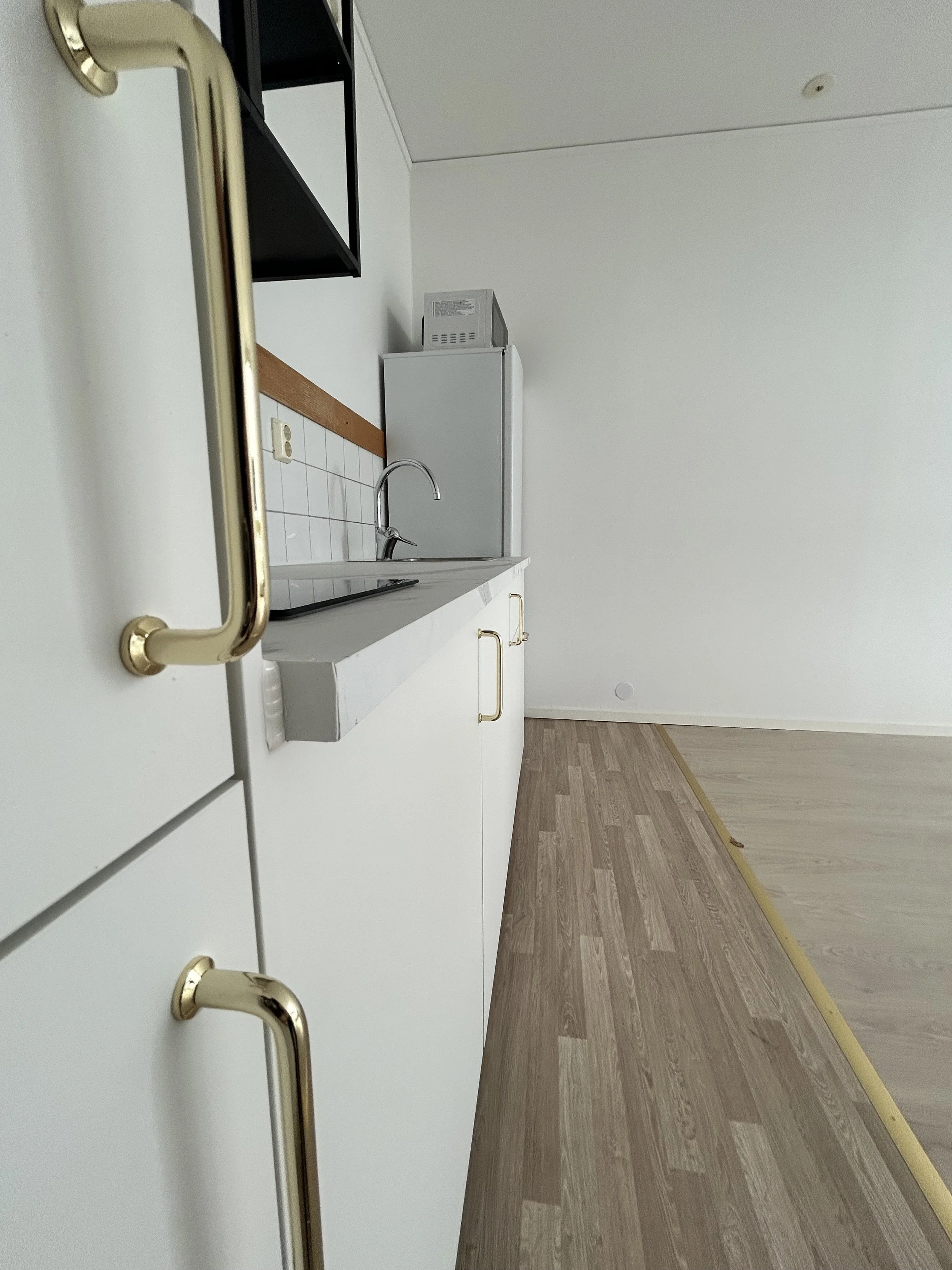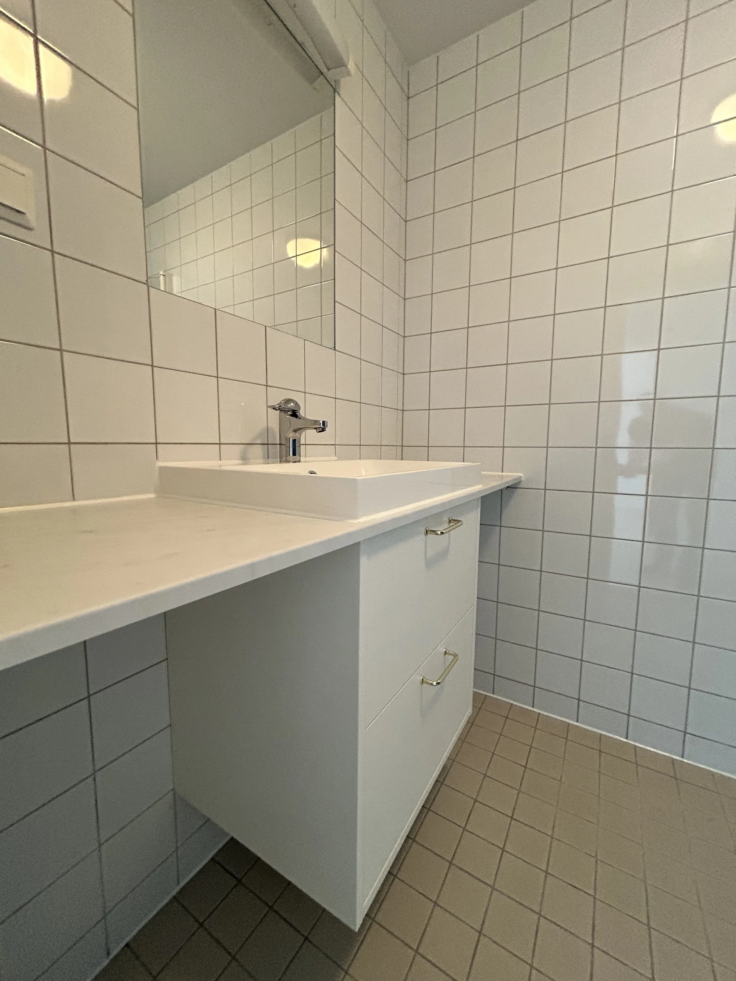 Vi förnyade ytskikt, golv och kök för att skapa en modern och lättskött bostad som känns både smart och hemtrevlig.